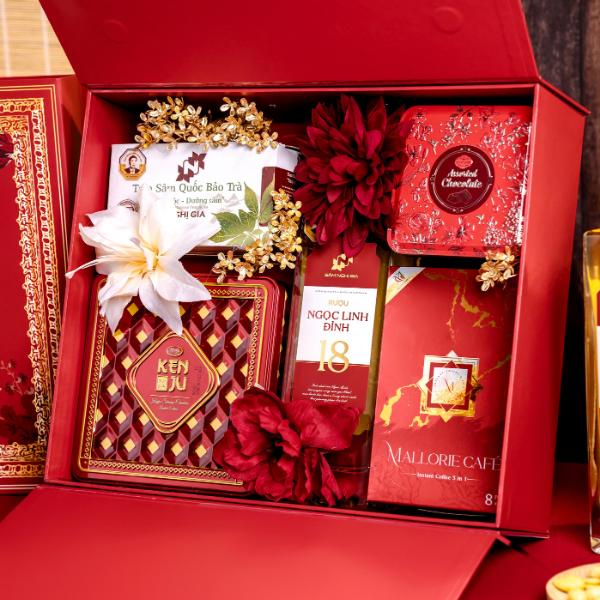 Sản phẩm chi tiết01 Rượu Ngọc Linh Đỉnh 18 (500ml), 01 hộp Tam Sâm Quốc Bảo Trà, 01 Bánh Kenju, 01 Cafe Mallorie, 01 Chocolate Assorted